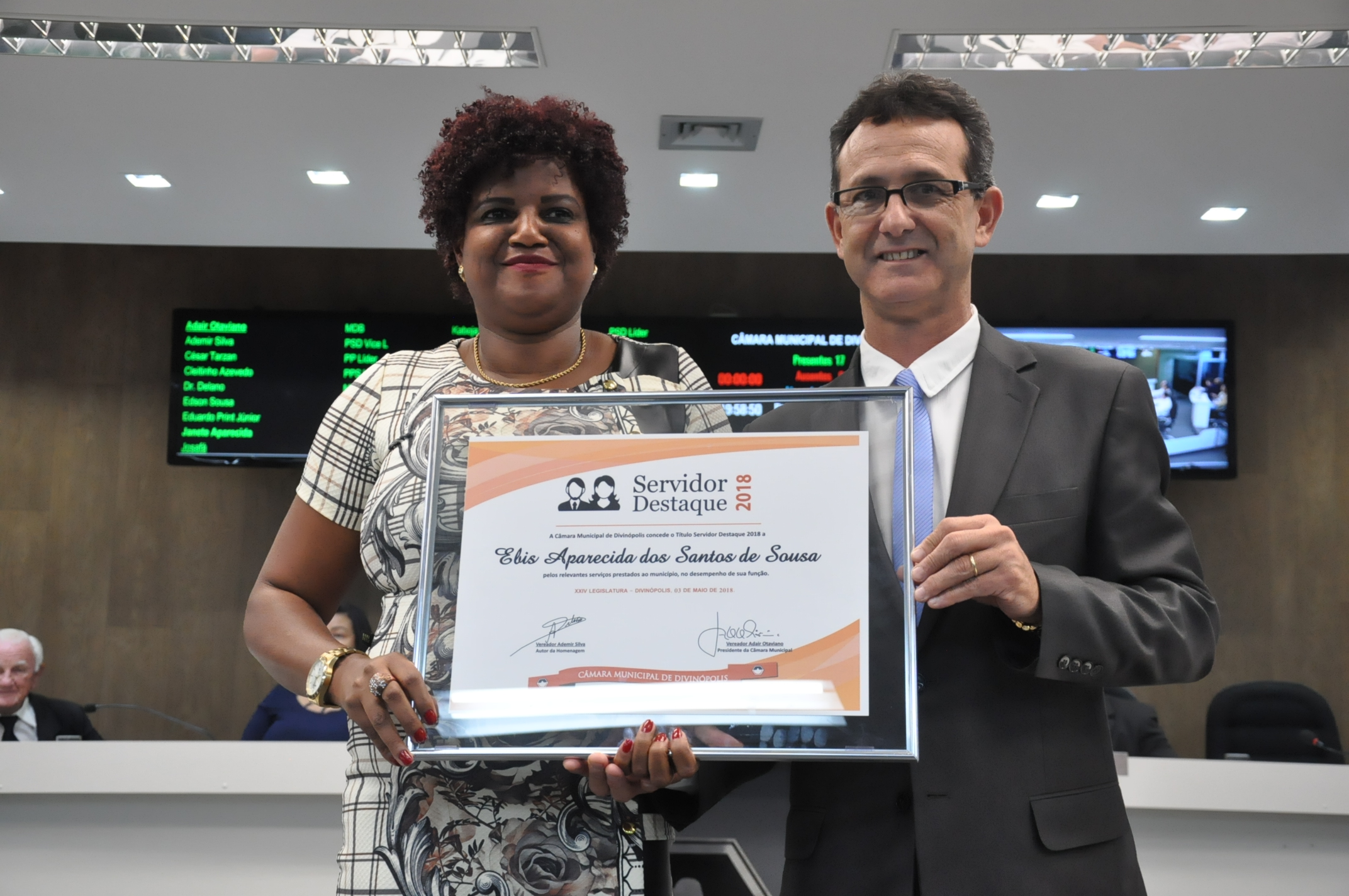 Ver. Ademir Silva -Elis Aparecida dos Santos de Sousa -Comenda Servidor Destaque 2018 / 03-05-2018